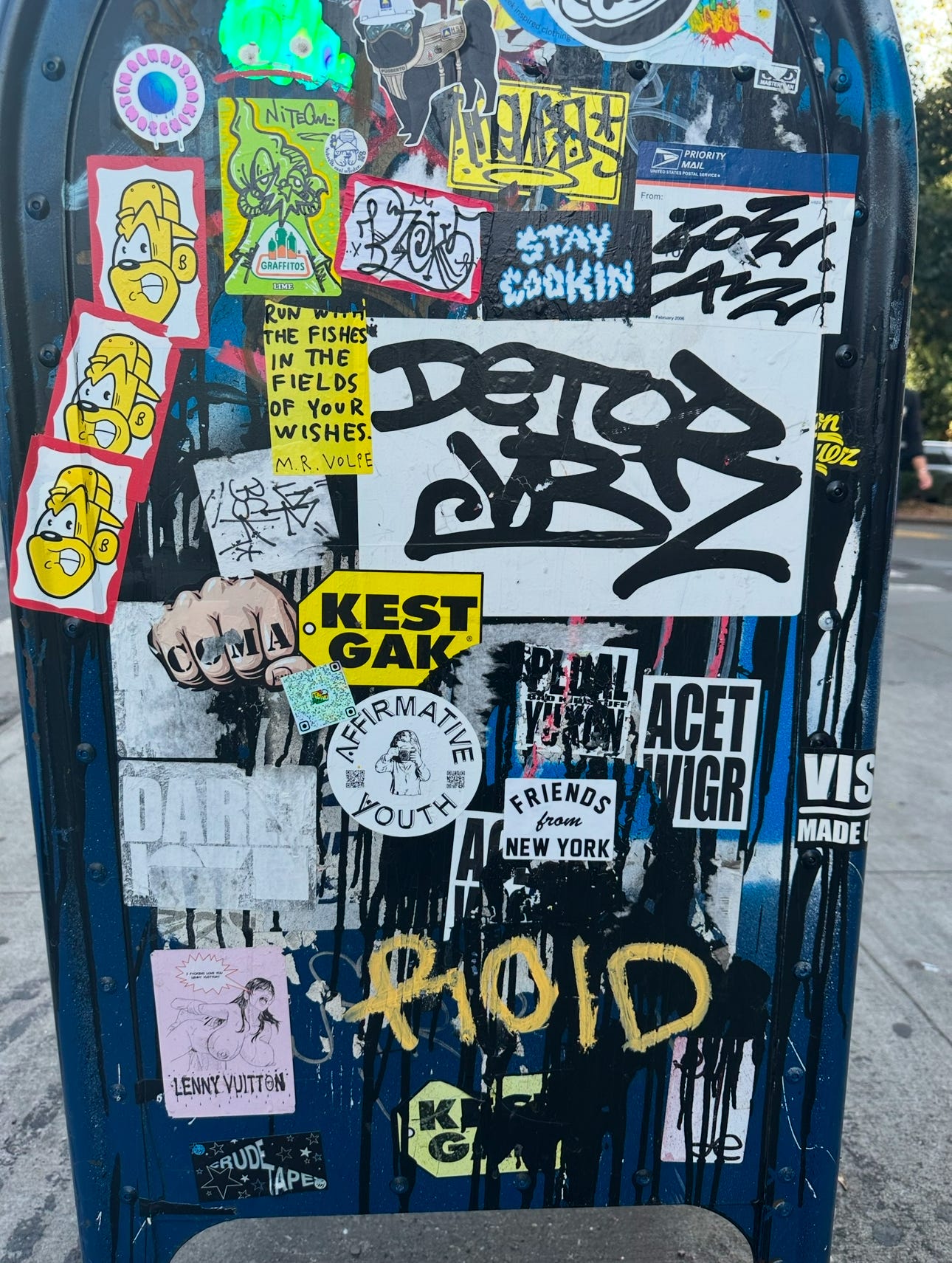 GAK's stickers are characterized by their bold designs, often parodying corporate logos. For instance, the "KEST GAK" sticker mimics the Best Buy logo, while others spoof brands like Pizza Hut and Rite Aid. These stickers serve as a form of urban commentary, challenging the commercialization of public spaces.